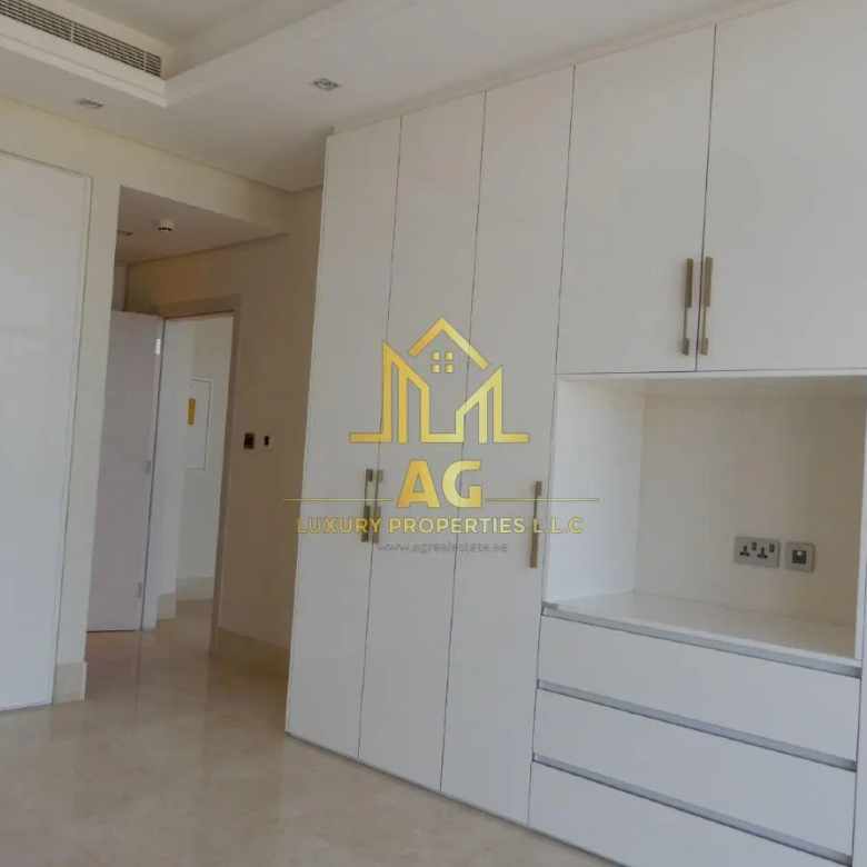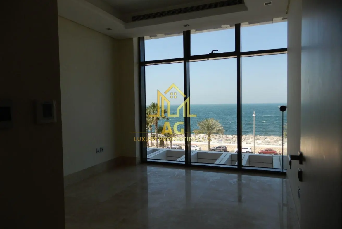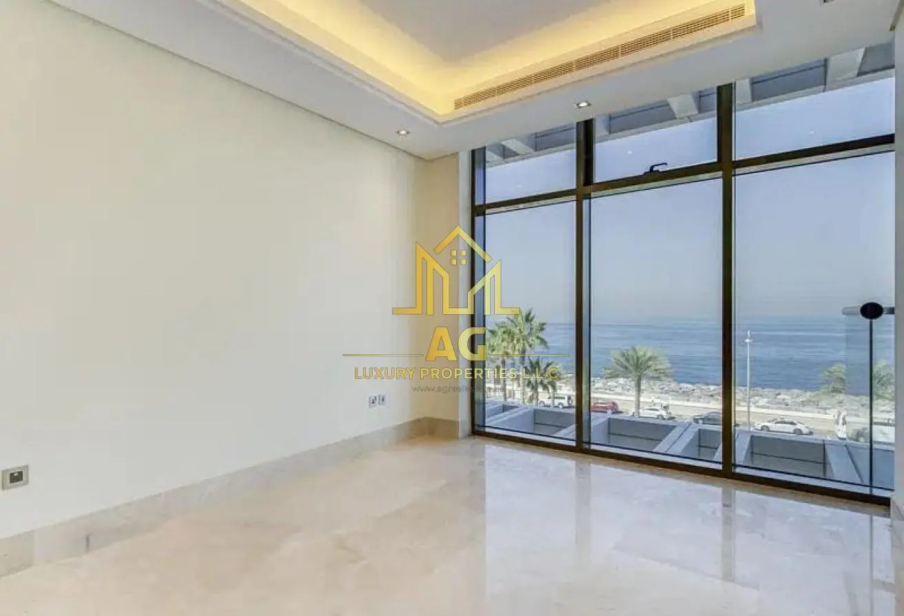 The apartment features a well-designed built-up area of 1,328 sq.ft and includes two bedrooms, two bathrooms, and a separate maid’s room. Offered unfurnished, the unit boasts an open-plan living and dining layout, a modern kitchen with built-in appliances, and floor-to-ceiling windows that allow natural light and sea views from every room. A spacious balcony provides the perfect outdoor space for relaxing or entertaining.