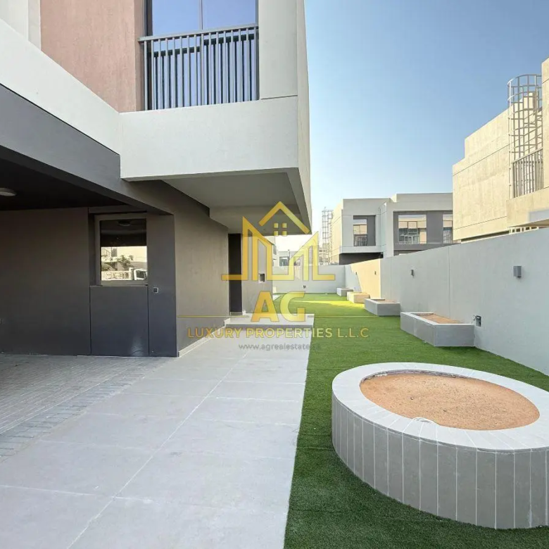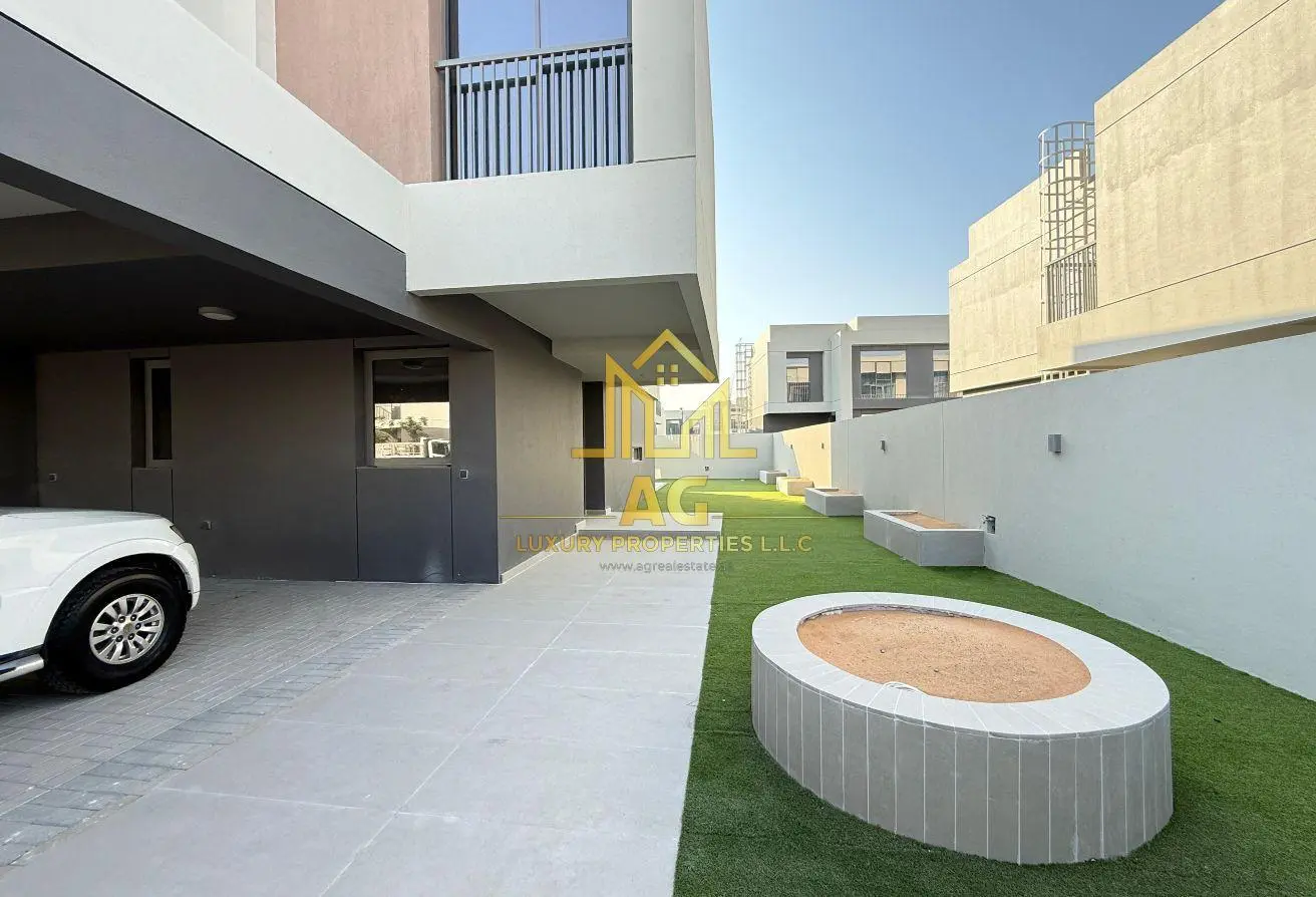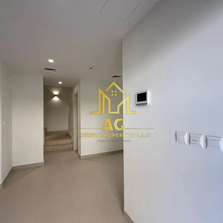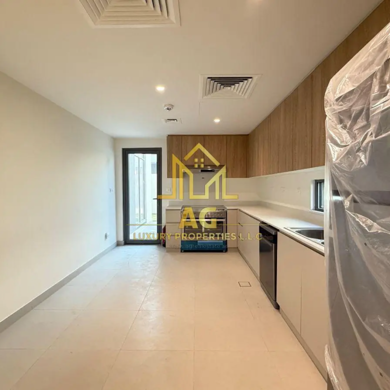 The townhouse features a built-up area of 3,507 sq.ft and includes four spacious bedrooms, a dedicated maid’s room, and four bathrooms. Offered unfurnished, the home showcases modern architecture, contemporary finishes, and well-proportioned living spaces designed for comfortable family living. Built-in wardrobes, kitchen appliances, and a private balcony enhance functionality, while covered parking is available for two vehicles.