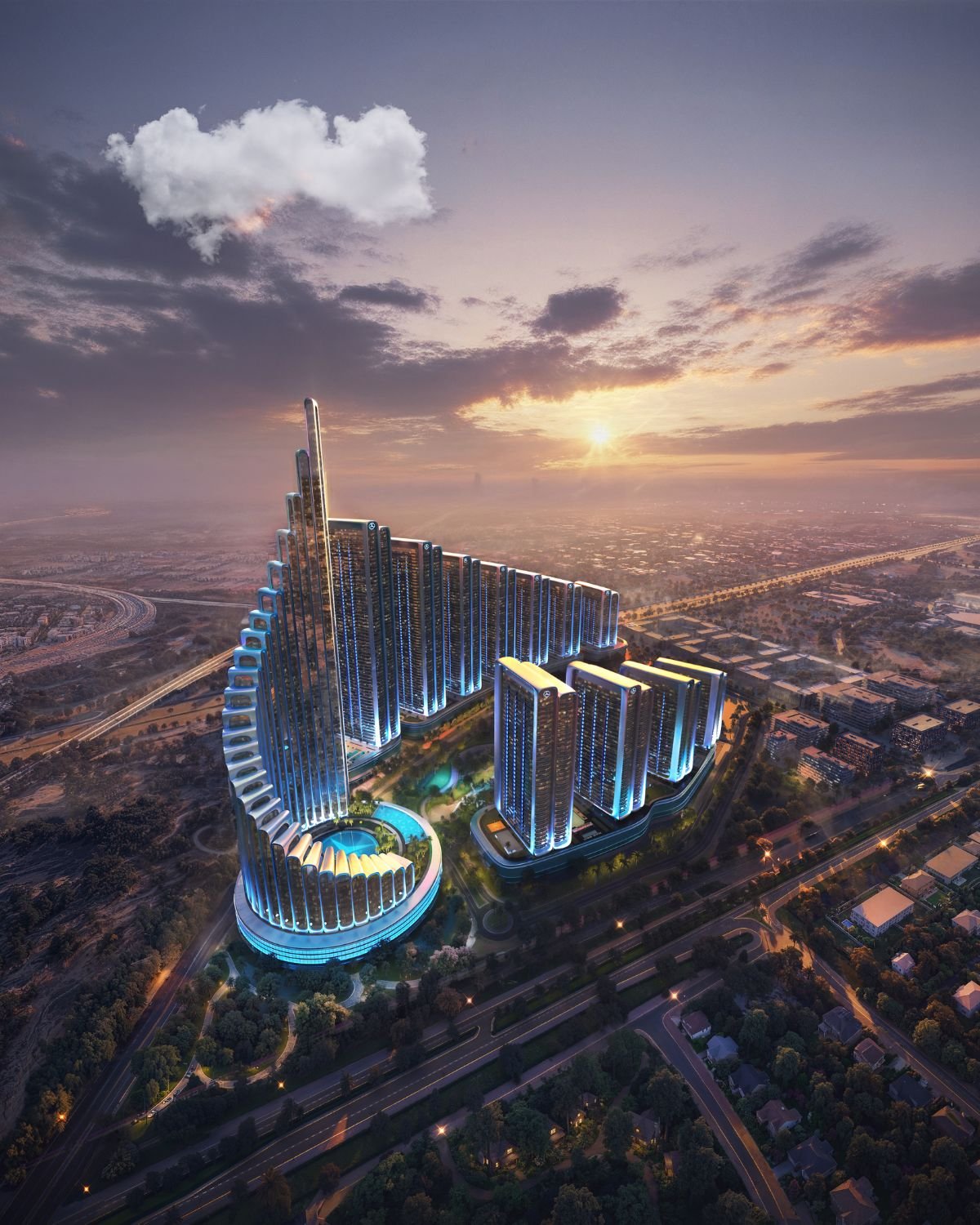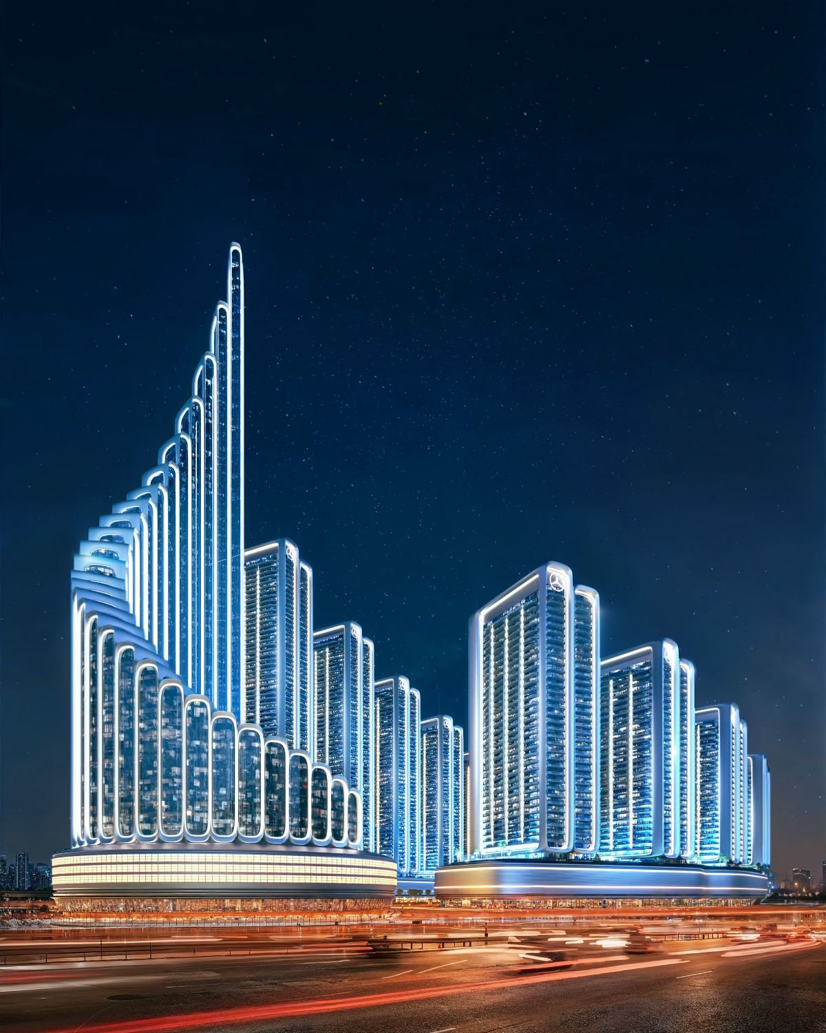 Mercedes-Benz Places by Binghatti in Meydan represents a new generation of branded luxury living in Dubai, combining Binghatti’s signature architectural identity with Mercedes-Benz design philosophy. The project is planned as a landmark residential destination offering premium lifestyle infrastructure, curated retail experiences, and wellness-focused community spaces.