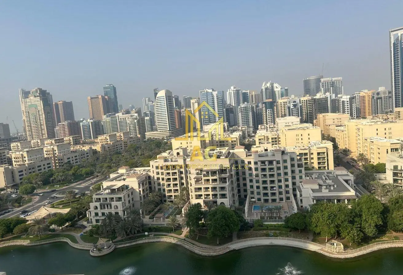 The apartment features a spacious built-up area of 2,558 sq.ft and includes three bedrooms, three bathrooms, and a separate study room. Offered unfurnished, the unit has been fully renovated and includes built-in wardrobes, a laundry area, kitchen appliances, and a large balcony overlooking the pool. Floor-to-ceiling windows allow natural light throughout the apartment.